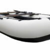 Надувное дно лодки Хантер 335 А Лайт – имеет безкилевую геометрию, это максимально повысило остойчивость лодки в «статике», что в свою очередь позволило человеку спокойно стоять на надувном дне НДНД. Это по достоинству оценят любители спиннинга, которые любят ловить стоя в заброс. Надувное дно крепится к баллонам широкой полосой с двойным контуром, что придает конструкции необходимую жесткость. Само дно НДНД представляет собой замкнутый и независимый герметичный отсек. С внешней стороны надувного дна. установлена специальная жесткая пластина, так называемый «интерцептор», он существенно облегчает выход на глиссирование, и управление лодкой. Конструкция, надувного дна имеет необходимую жесткость и обеспечивает лодке высокие скоростные характеристики, позволяя выходить на глиссирование даже под маломощным мотором.