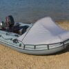 Носовой тент для надувных ПВХ-лодок. Тент изготавливается из непромокаемых текстильных материалов и предназначен для защиты от ветра, брызг и мошкары пассажиров лодки. Тент легко устанавливается на надутую лодку с помощью тонкой металлической составной трубы и системы крючков и пряжек для точной натяжки тента. Тент носовой на лодки «Пилот»-300,320,330,360.